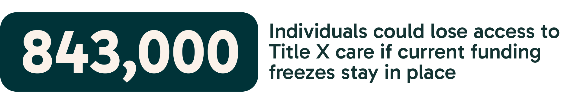 While funding has been restored to many facilities, in March 2025 nearly one in five Title X grantees received notification that their funding would be withheld, affecting an estimated 879 clinics in 23 states. Should this funding freeze become permanent, 834,000 people could lose access to Title X care over the course of a year, and care could scale down in 15 states and completely disappear in seven states.